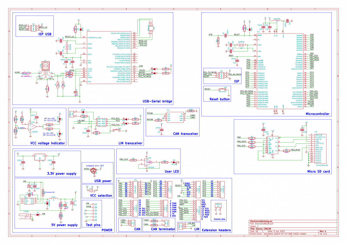 3) Choose the Elduino board from Arduino IDE->Tools->Boards->Eduino CAN128 (AT90CAN128)